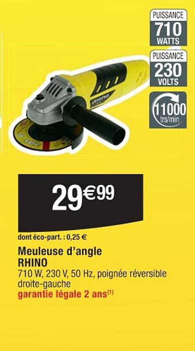 Découvrez la superbe offre de Meuleuse D’angle Rhino dans le nouveau catalogue de Cora. En plus de cette offre, vous trouverez de nombreuses autres réductions attrayantes. Vous pouvez facilement commander le Meuleuse D’angle Rhino en ligne via le site web de Cora ou l'acheter dans un magasin près de chez vous.