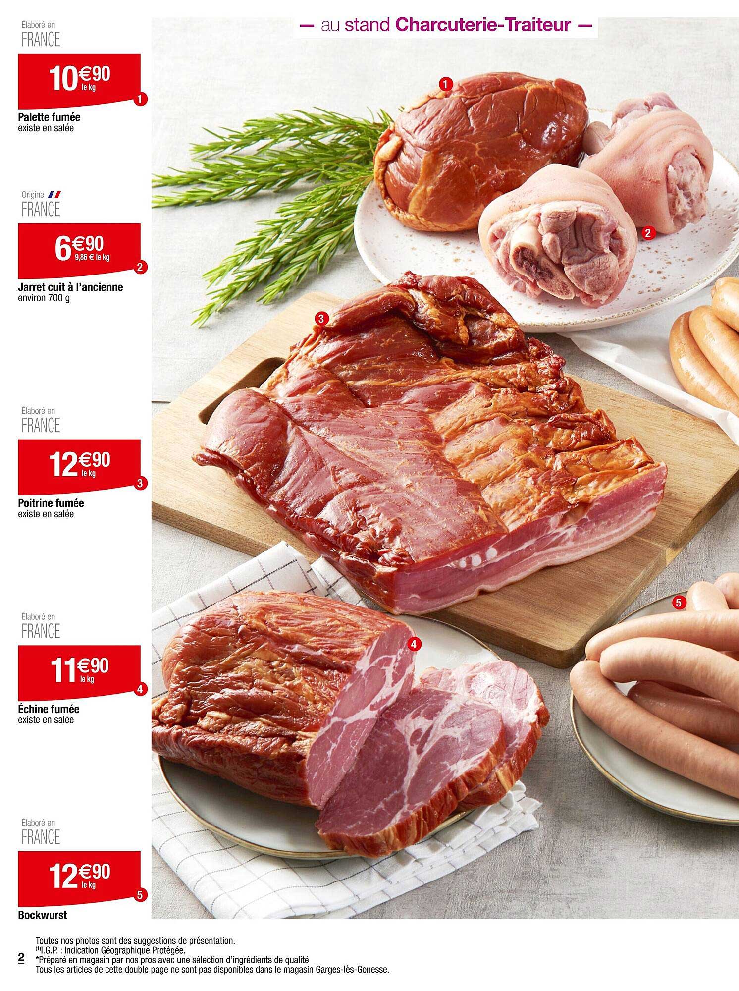Offre de Palette Fumée Jarret Cuit À L’ancienne Poitrine Fumée Échine Fumée Bockwurst chez Cora