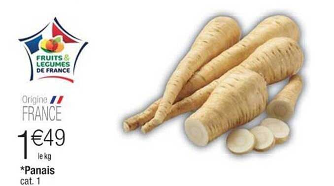 Découvrez la superbe offre de *Panais* dans le nouveau catalogue de Cora. En plus de cette offre, vous trouverez de nombreuses autres réductions attrayantes. Vous pouvez facilement commander le *Panais* en ligne via le site web de Cora ou l'acheter dans un magasin près de chez vous.
