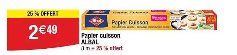 Vous voulez être informé immédiatement dès que le Papier Cuisson Albal est en promotion? Inscrivez-vous à notre alerte d'offres. Vous recevrez une notification dès que le produit sera disponible à un prix avantageux.