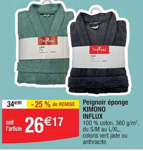 Découvrez l'offre de Peignoir Éponge Kimono Influx chez Cora! Cette offre fantastique est maintenant disponible dans le nouveau catalogue de Cora. Profitez de cette occasion et économisez considérablement sur votre achat.