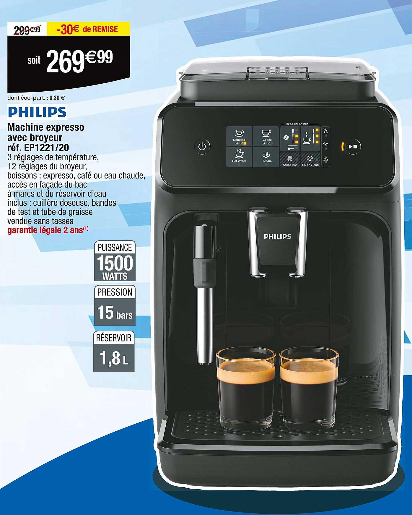Offre de Philips Machine Expresso Avec Broyeur Réf. Ep1221/20 chez Cora