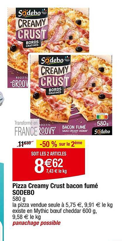 Découvrez l'offre de Pizza Creamy Crust Bacon Fumé Sodebo chez Cora! Cette offre fantastique est maintenant disponible dans le nouveau catalogue de Cora. Profitez de cette occasion et économisez considérablement sur votre achat.