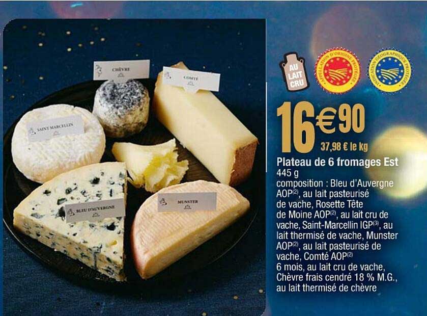 Découvrez la superbe offre de Plateau De 6 Fromages Est dans le nouveau catalogue de Cora. En plus de cette offre, vous trouverez de nombreuses autres réductions attrayantes. Vous pouvez facilement commander le Plateau De 6 Fromages Est en ligne via le site web de Cora ou l'acheter dans un magasin près de chez vous.