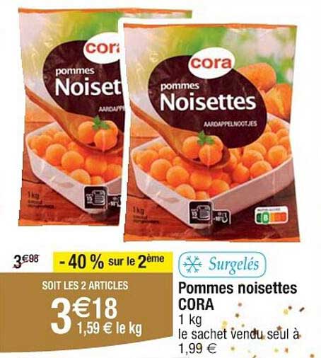 Découvrez dès maintenant la offre Pommes noisettes CORA dans le catalogue de Cora. Cette offre est valable du 10/12/2024 au 31/12/2024.