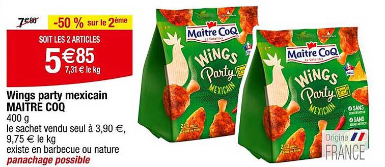 Offre de Wings Party Mexicain Maître Coq chez Cora