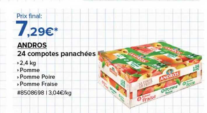 Découvrez dès maintenant la offre ANDROS 24 compotes panachées dans le catalogue de Costco. Cette offre est valable du 26/08/2025 au 07/09/2025.
