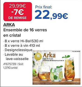 Offre de Arka Ensemble De 16 Verres En Cristal chez Costco