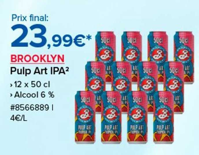 Découvrez dès maintenant la offre BROOKLYN Pulp Art IPA² dans le catalogue de Costco. Cette offre est valable du 25/08/2025 au 31/08/2025.