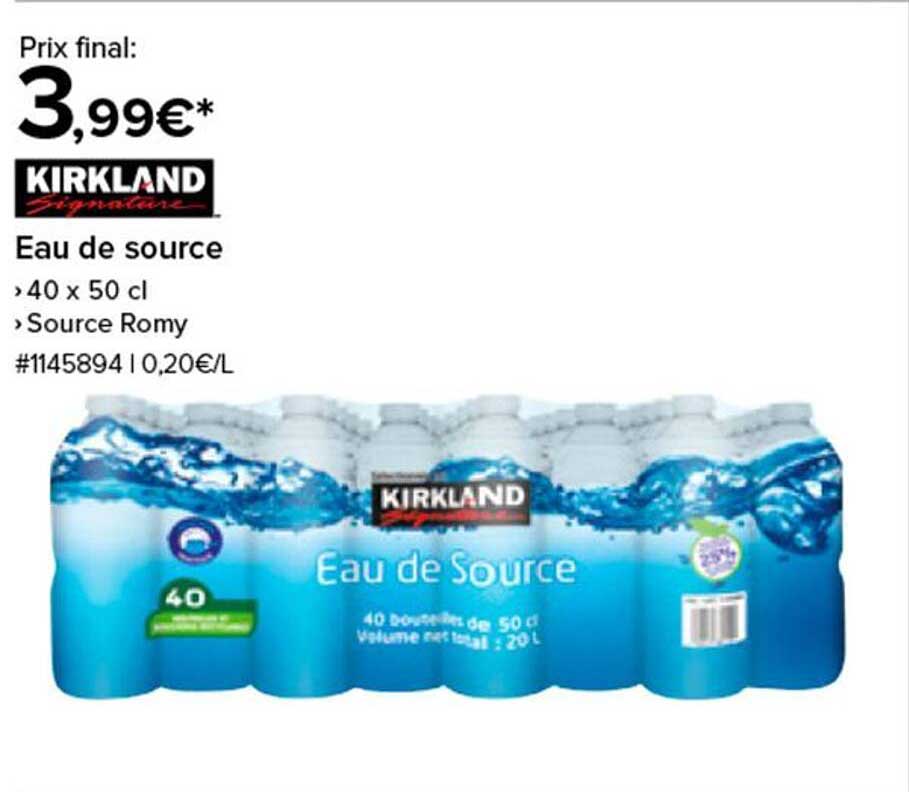 Nous avons une excellente nouvelle pour vous ! Pendant la période du 13 au 27 octobre 2025, Costco propose une offre incroyable sur des packs d'eau de source Kirkland. Profitez de 40 bouteilles de 50 cl chacune, parfaites pour étancher votre soif, surtout lors des journées chaudes ou pour accompagner vos repas. Cette offre est idéale pour les familles, les événements ou tout simplement pour avoir de l'eau à portée de main à la maison.