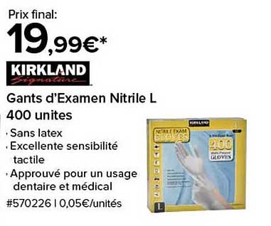 Découvrez dès maintenant la offre Gants d'Examen Nitrile L 400 unités dans le catalogue de Costco. Cette offre est valable du 15/10/2025 au 19/10/2025.