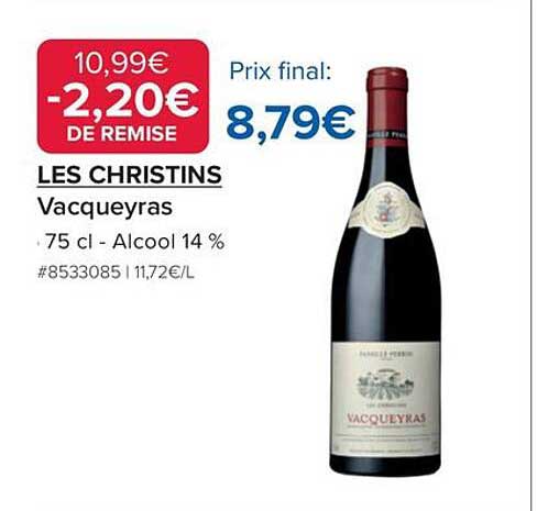 Découvrez l'offre de Les Christins Vacqueyras chez Costco! Cette offre fantastique est maintenant disponible dans le nouveau catalogue de Costco. Profitez de cette occasion et économisez considérablement sur votre achat.
