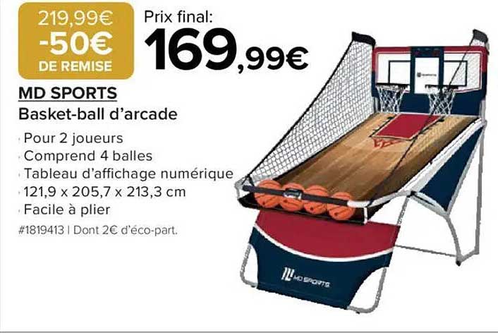 Découvrez l'offre de Md Sports Basket-Ball D'arcade chez Costco! Cette offre fantastique est maintenant disponible dans le nouveau catalogue de Costco. Profitez de cette occasion et économisez considérablement sur votre achat.