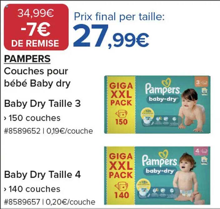 Découvrez dès maintenant la offre PAMPERS Couches pour bébé Baby dry dans le catalogue de Costco. Cette offre est valable du 28/11/2025 au 01/12/2025.