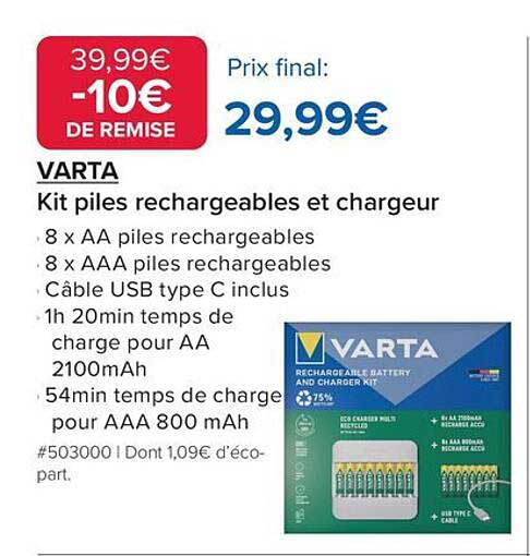 Découvrez l'offre de Varta Kit Piles Rechargeables Et Chargeur chez Costco! Cette offre fantastique est maintenant disponible dans le nouveau catalogue de Costco. Profitez de cette occasion et économisez considérablement sur votre achat.