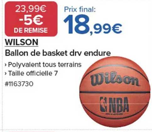 Amateurs de basket, cette promotion est faite pour vous ! Le ballon de basket WILSON drv endure, polyvalent et parfait pour tous les terrains, est proposé à un prix exceptionnel. C'est l'occasion idéale de vous équiper ou de faire plaisir à un proche passionné de ce sport.
