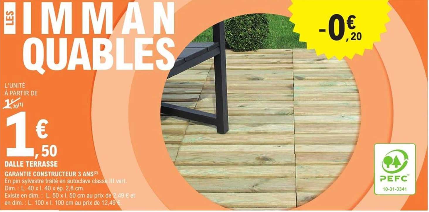 Découvrez l'offre de Dalle Terrasse chez E.Leclerc Brico! Cette offre fantastique est maintenant disponible dans le nouveau catalogue de E.Leclerc Brico. Profitez de cette occasion et économisez considérablement sur votre achat.