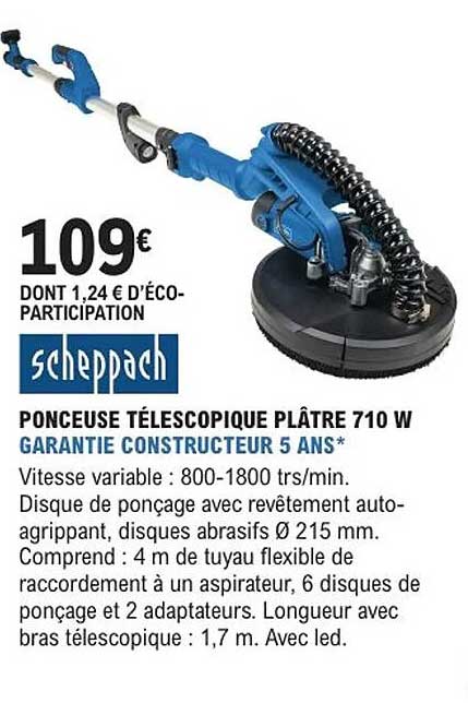 Découvrez l'offre de Ponçeuse Télescopique Plâtre 710 W chez E.Leclerc Brico! Cette offre fantastique est maintenant disponible dans le nouveau catalogue de E.Leclerc Brico. Profitez de cette occasion et économisez considérablement sur votre achat.