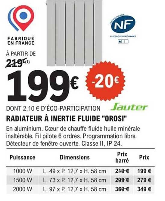 Offre de Radiateur À Inertie Fluide "Orosi" chez E.Leclerc Brico