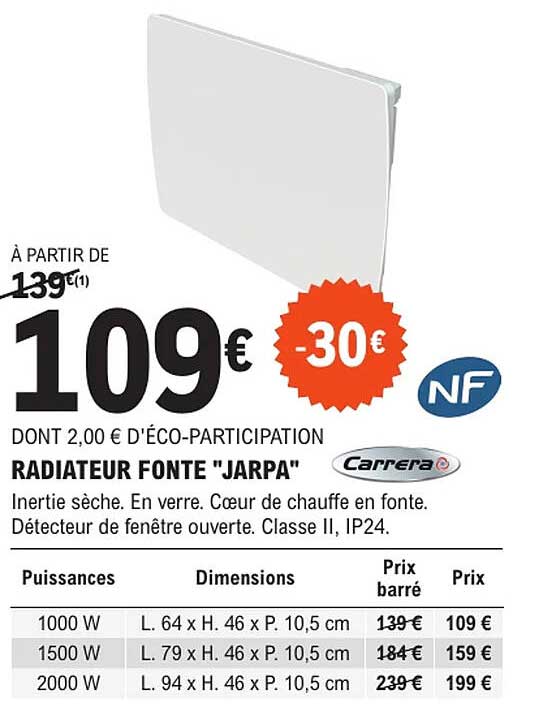 Découvrez l'offre de Radiateur Fonte "Jarpa" chez E.Leclerc Brico! Cette offre fantastique est maintenant disponible dans le nouveau catalogue de E.Leclerc Brico. Profitez de cette occasion et économisez considérablement sur votre achat.