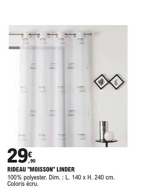 Découvrez l'offre de Rideau "Moisson" Linder chez E.Leclerc Brico! Cette offre fantastique est maintenant disponible dans le nouveau catalogue de E.Leclerc Brico. Profitez de cette occasion et économisez considérablement sur votre achat.
