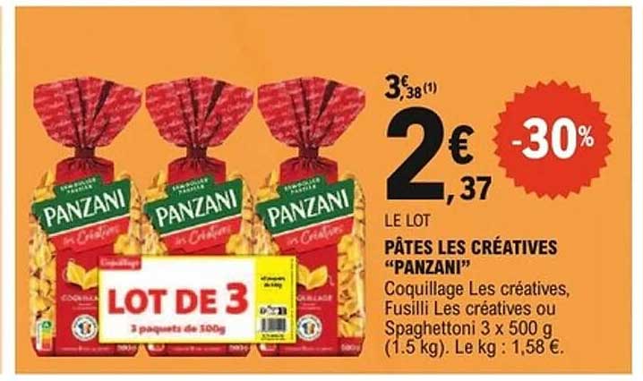 Découvrez dès maintenant la offre PÂTES LES CRÉATIVES "PANZANI" dans le catalogue de E.Leclerc Express. Cette offre est valable du 04/11/2025 au 15/11/2025.