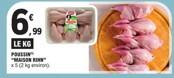 Découvrez notre offre exceptionnelle sur le Poussin "Maison Rihn", proposé à un prix très attractif. Avec un coût de seulement 6,99 € le kilogramme, c'est l'occasion rêvée de savourer un produit de qualité tout en faisant des économies. Que ce soit pour un repas en famille ou un dîner entre amis, ce poussin saura ravir vos convives.