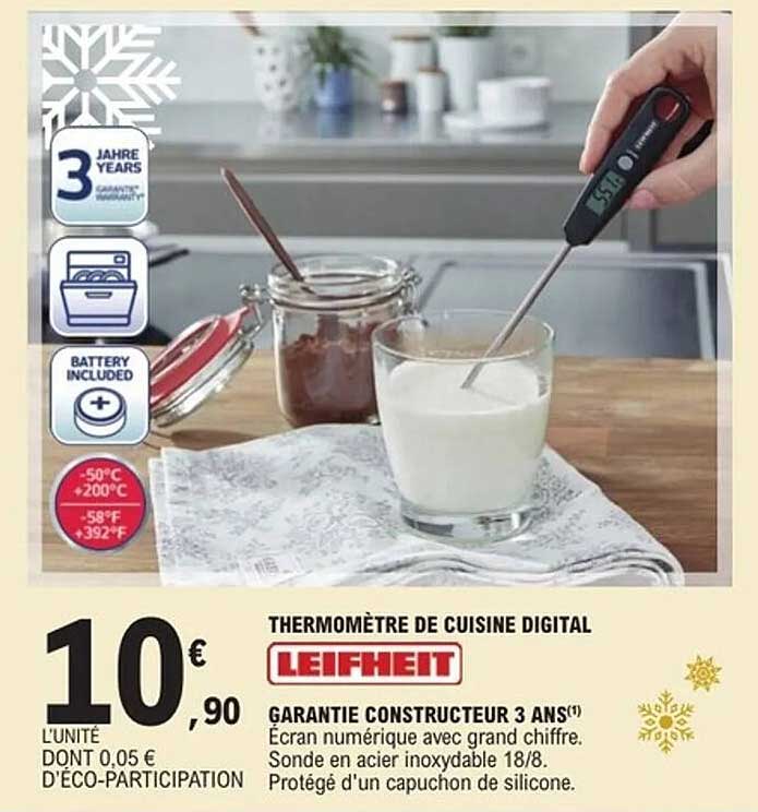 Découvrez dès maintenant la offre THERMOMÈTRE DE CUISINE DIGITAL LEIFHEIT dans le catalogue de E.Leclerc Express. Cette offre est valable du 04/11/2025 au 15/11/2025.