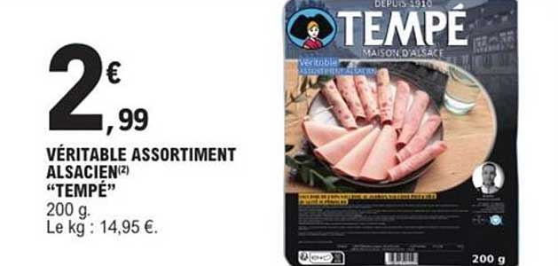 Découvrez le véritable assortiment alsacien "Tempé", un délice à savourer qui apporte un goût authentique et chaleureux à vos repas. Ce produit, proposé à un prix exceptionnel, est parfait pour vos apéritifs ou vos plats quotidiens. Profitez de cette offre valable du 23 au 27 septembre 2025 pour vous faire plaisir sans vous ruiner.