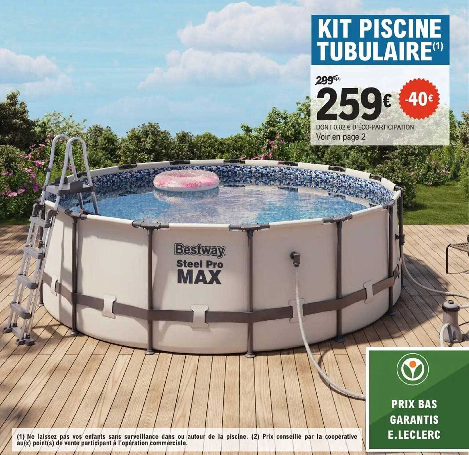 Découvrez dès maintenant la offre KIT PISCINE TUBULAIRE dans le catalogue de E.Leclerc Jardi. Cette offre est valable du 29/04/2025 au 17/05/2025.