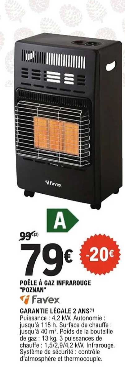 Chauffez votre maison avec style et efficacité grâce au poêle à gaz infrarouge "Poznan" de la marque Favex. Ce modèle révolutionnaire saura vous séduire par sa puissance et son autonomie, tout en s’insérant parfaitement dans votre intérieur. Ne laissez pas le froid s’installer, profitez de cette offre exceptionnelle pour vous équiper avant l’hiver !