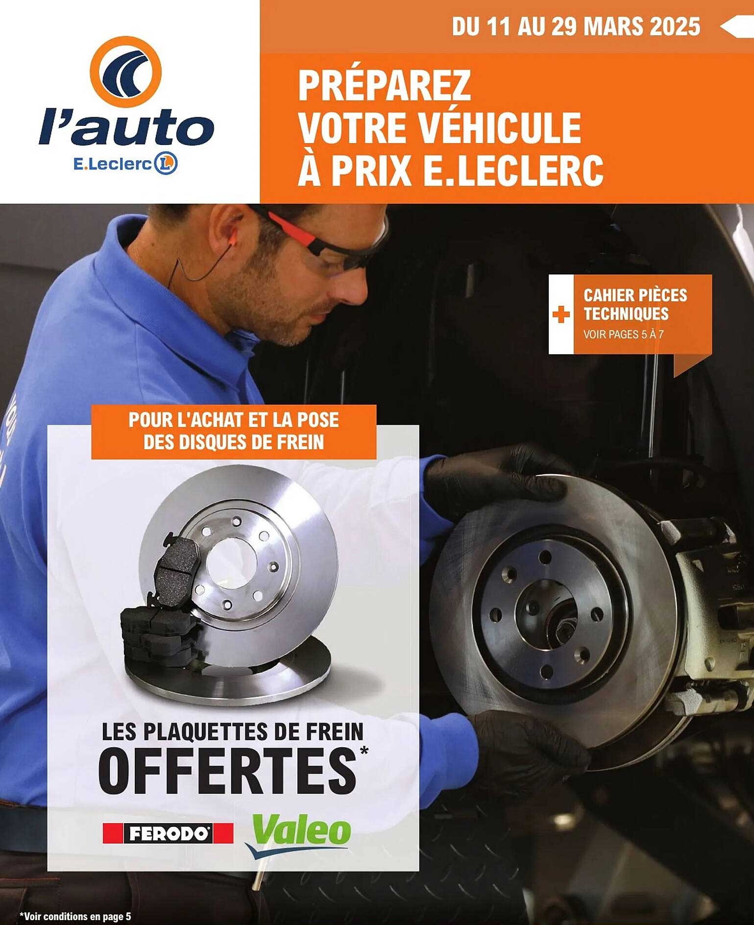 Découvrez dès maintenant la offre LES PLAQUETTES DE FREIN OFFERTES* dans le catalogue de E.Leclerc L'Auto. Cette offre est valable du 11/03/2025 au 29/03/2025.