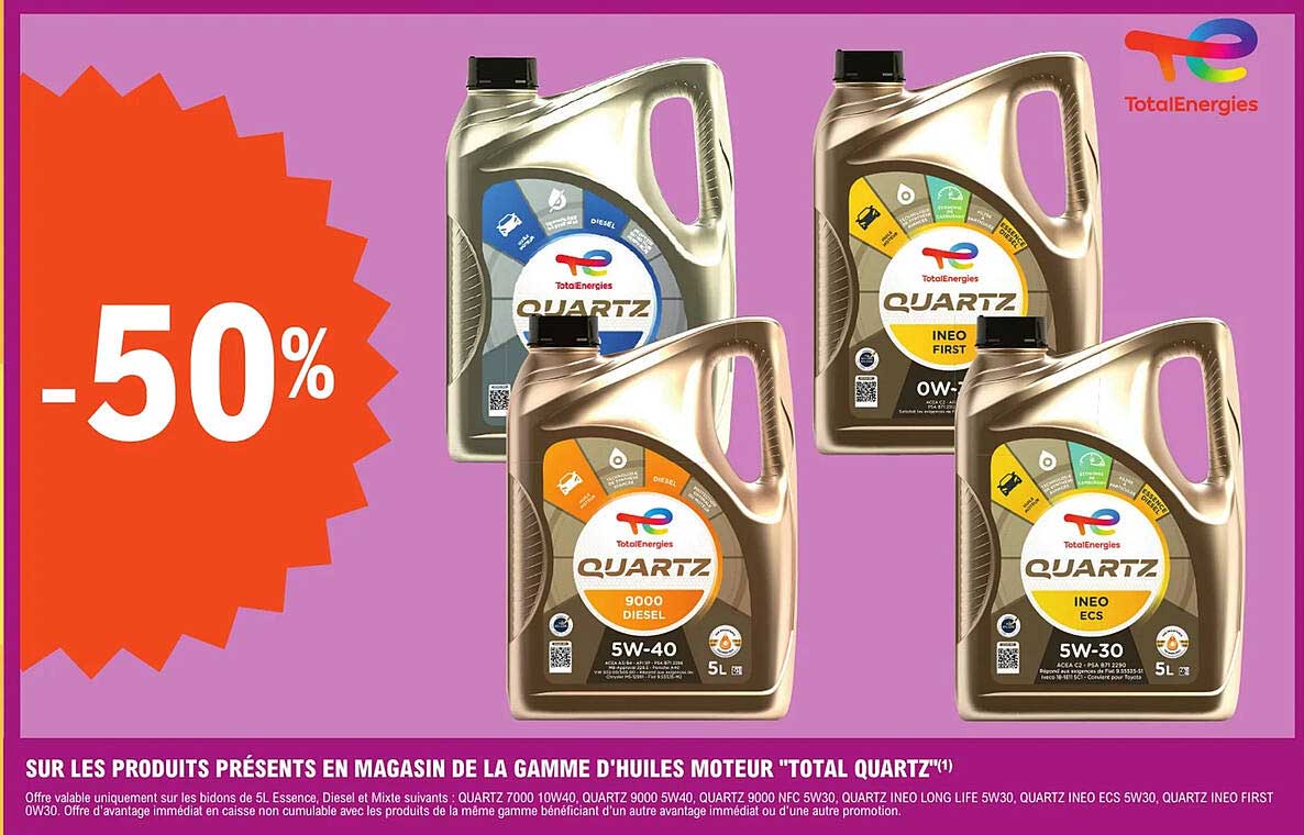 Découvrez la superbe offre de Totalenergies Quartz 9000 Diesel 5W-40 dans le nouveau catalogue de E.Leclerc L'Auto. En plus de cette offre, vous trouverez de nombreuses autres réductions attrayantes. Vous pouvez facilement commander le Totalenergies Quartz 9000 Diesel 5W-40 en ligne via le site web de E.Leclerc L'Auto ou l'acheter dans un magasin près de chez vous.