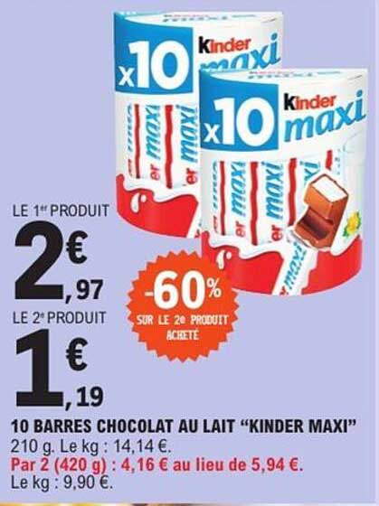 Offre de 10 Barres Chocolat Au Lait “Kinder Maxi” chez E.Leclerc