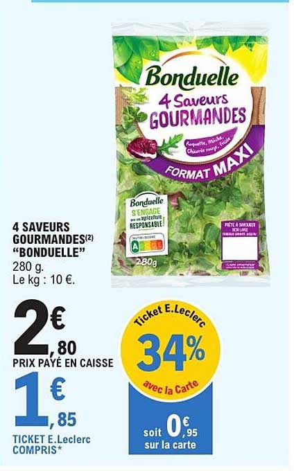 Découvrez l'offre de 4 Saveurs Gourmandes(2) "Bonduelle" chez E.Leclerc! Cette offre fantastique est maintenant disponible dans le nouveau catalogue de E.Leclerc. Profitez de cette occasion et économisez considérablement sur votre achat.