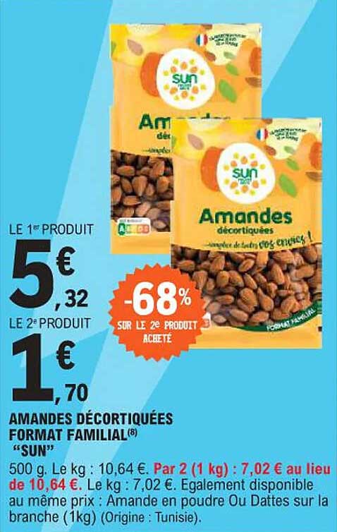 Offre de Amandes Décortiquées Format Familial® "Sun" chez E.Leclerc