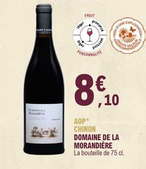 Découvrez dès maintenant la offre AOP* CHINON DOMAINE DE LA MORANDIÈRE dans le catalogue de E.Leclerc. Cette offre est valable du 03/09/2025 au 11/09/2025.