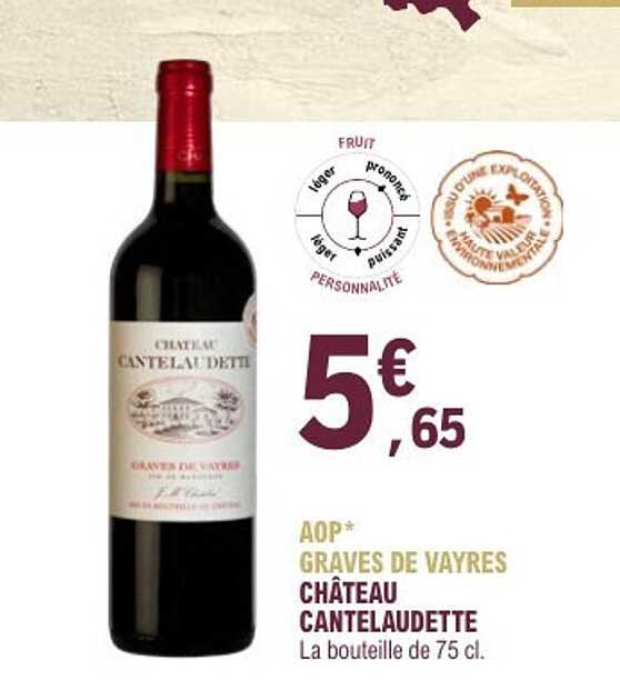 Découvrez dès maintenant la offre AOP* GRAVES DE VAYRES CHÂTEAU CANTELAUDETTE dans le catalogue de E.Leclerc. Cette offre est valable du 03/09/2025 au 11/09/2025.