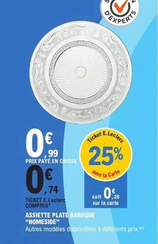 Découvrez l'offre de Assiette Plate Baroque "Homeside" chez E.Leclerc! Cette offre fantastique est maintenant disponible dans le nouveau catalogue de E.Leclerc. Profitez de cette occasion et économisez considérablement sur votre achat.