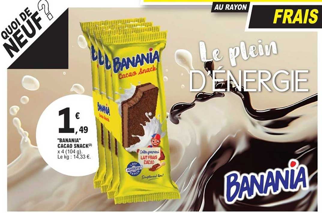 Découvrez dès maintenant la offre BANANIA Cacao Snack dans le catalogue de E.Leclerc. Cette offre est valable du 14/10/2025 au 25/10/2025.