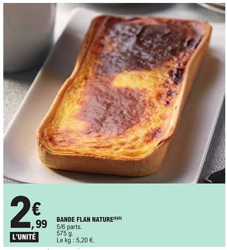 Découvrez notre promotion sur la Bande Flan Nature, un dessert traditionnel apprécié par toute la famille. Avec sa texture moelleuse et son goût délicat, ce flan est parfait pour terminer un repas en beauté. Économisez tout en vous régalant grâce à cette offre exceptionnelle !