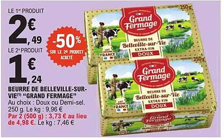 Découvrez l'offre de Beurre De Belleville-Sur-Vie "Grand Fermage" Extra-Fin Doux chez E.Leclerc! Cette offre fantastique est maintenant disponible dans le nouveau catalogue de E.Leclerc. Profitez de cette occasion et économisez considérablement sur votre achat.