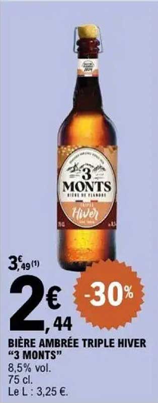Offre de Bière Ambrée Triple Hiver "3 Monts" chez E.Leclerc