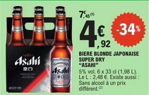 Découvrez dès maintenant la offre BIERE BLONDE JAPONAISE SUPER DRY “ASAHI” dans le catalogue de E.Leclerc. Cette offre est valable du 07/10/2025 au 18/10/2025.