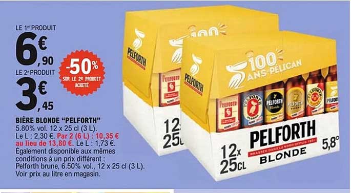 Découvrez dès maintenant la offre BIÈRE BLONDE "PELFORTH" dans le catalogue de E.Leclerc. Cette offre est valable du 27/05/2025 au 07/06/2025.