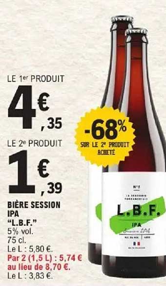 Découvrez dès maintenant la offre BIÈRE SESSION IPA "L.B.F." dans le catalogue de E.Leclerc. Cette offre est valable du 14/10/2025 au 25/10/2025.