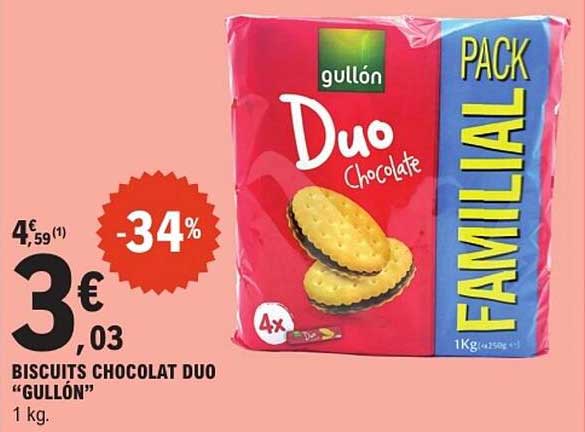 Découvrez dès maintenant la offre BISCUITS CHOCOLAT DUO “GULLÓN” dans le catalogue de E.Leclerc. Cette offre est valable du 20/05/2025 au 31/05/2025.