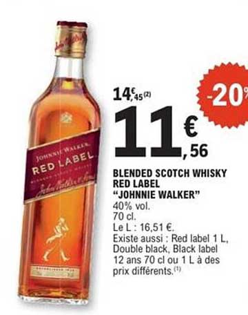 Découvrez la promotion incroyable sur le Blended Scotch Whisky Red Label de Johnnie Walker, un incontournable pour les amateurs de whisky. Profitez de cette offre, valable du 3 au 14 juin 2025, pour vous faire plaisir ou pour offrir un cadeau raffiné à vos amis. Avec une réduction de 20%, c'est le moment idéal pour remplir votre bar avec une bouteille de qualité à un prix attractif.