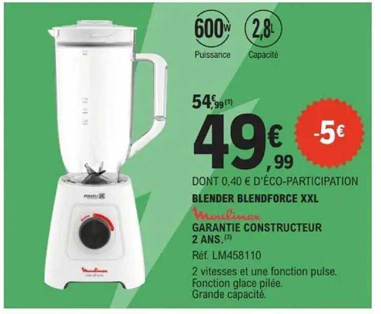 Découvrez l'offre de Blender Blendforce Xxl Moulinex chez E.Leclerc! Cette offre fantastique est maintenant disponible dans le nouveau catalogue de E.Leclerc. Profitez de cette occasion et économisez considérablement sur votre achat.