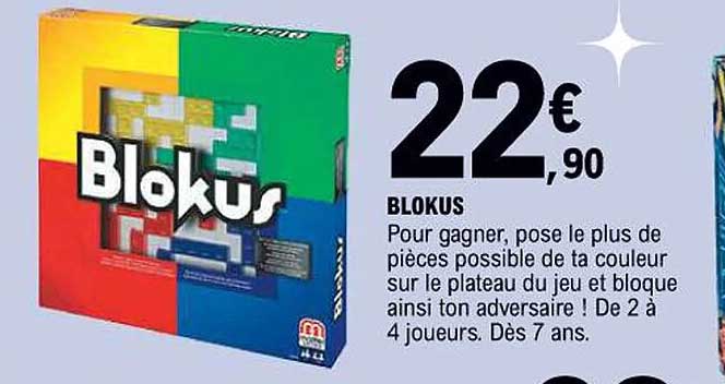 Découvrez l'offre de Blokus chez E.Leclerc! Cette offre fantastique est maintenant disponible dans le nouveau catalogue de E.Leclerc. Profitez de cette occasion et économisez considérablement sur votre achat.